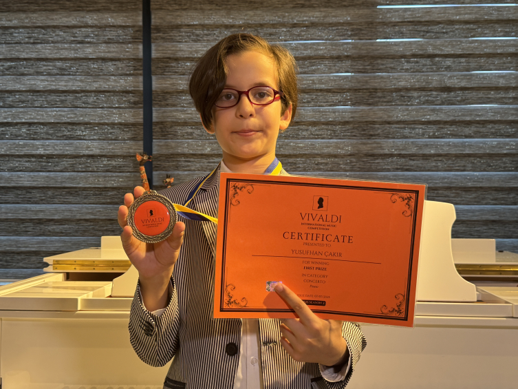 "Pandemi döneminde Yusufhan'ın yeteneği ortaya çıktı. İki yıl boyunca evden çıkmayınca 5 yaşında Yusufhan kendi başına piyano çalmayı öğrendi. 7 yaşında özel bir eğitim merkezinde ders almaya başladı. Kısa sürede üstün yetenek ve mutlak kulak olduğu ortaya çıktı. Yani Yusufhan'ın duyduğunu çalabilen bir yeteneği var. En son İngiltere'nin dünya çapında tanınan Kraliyet Müzik Okulunun Grade 8 Piyano Sınavını geçerek 60 ülkede tanınırlığı olan lise diplomasını aldı. Bu başarısını 10 yaşında gerçekleştirdi. Yine bizi gururlandıran şey çevrimiçi olarak gerçekleştirilen ve dünyanın her ülkesinden binlerce kişinin katıldığı Vivaldi Uluslararası Müzik Yarışması'nda birincilik kazandı."