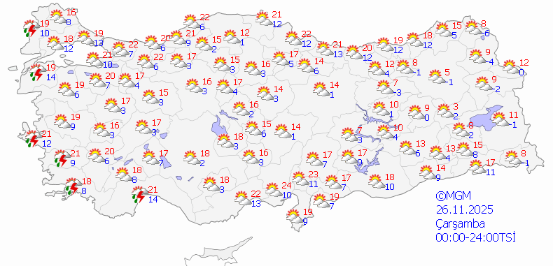 Parçalı bulutlu bir havanın hakim olacağı İzmir'de ise sıcaklığın 21 derece olması bekleniyor.