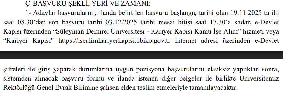 Süleyman Demirel Üniversitesi, Cumhurbaşkanlığı Kariyer Kapısından müracaat yapan adayların başvuru formu ve eklerini kuruma şahsen teslim etmesini istedi!