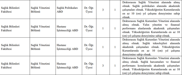İlgili yükseköğretim kurumu diğer üniversitelere nazaran farklı bir yöntem izleyerek öğretim üyesi kadrolarında tecrübe şartına yer vermiştir.