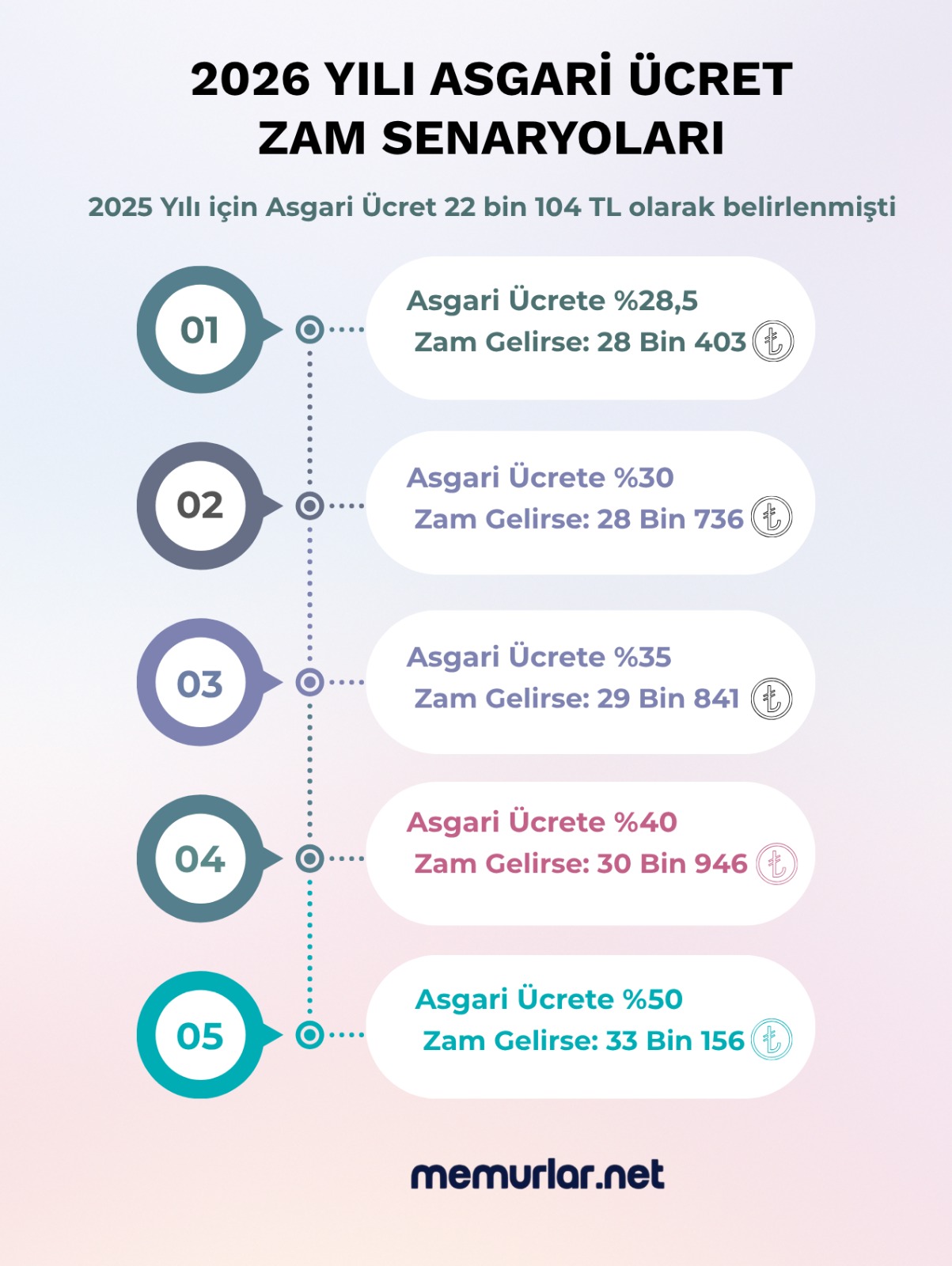 2026 Yılı Asgari Ücret Zam Senaryoları Tablosu