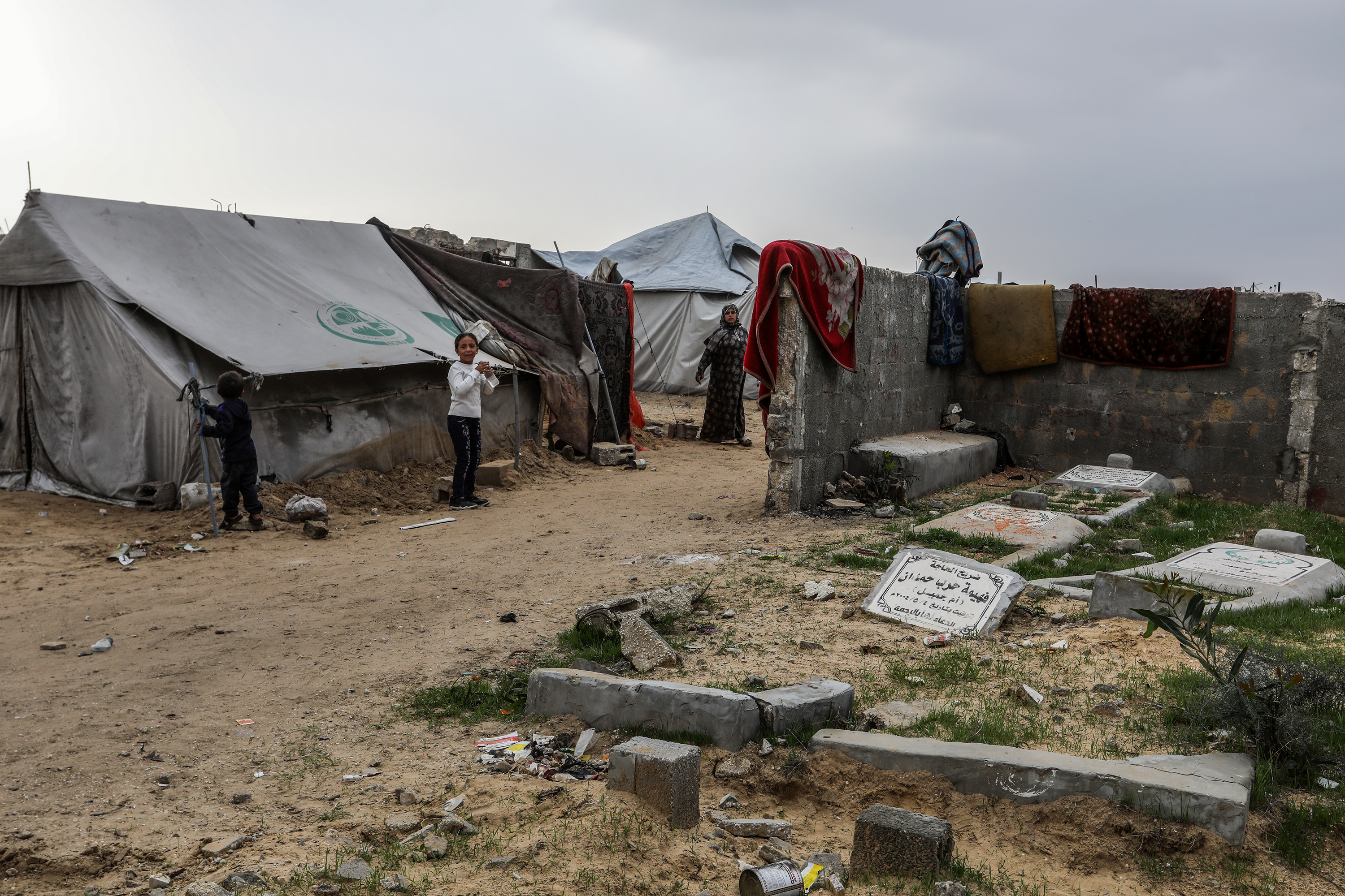 İsrail ve Hamas arasında sağlanan ateşkesin ardından yaşadıkları bölgelere dönemeyen Filistinliler, mezarlıklara kurdukları derme çatma çadırlarda yaşam mücadelesi veriyor.