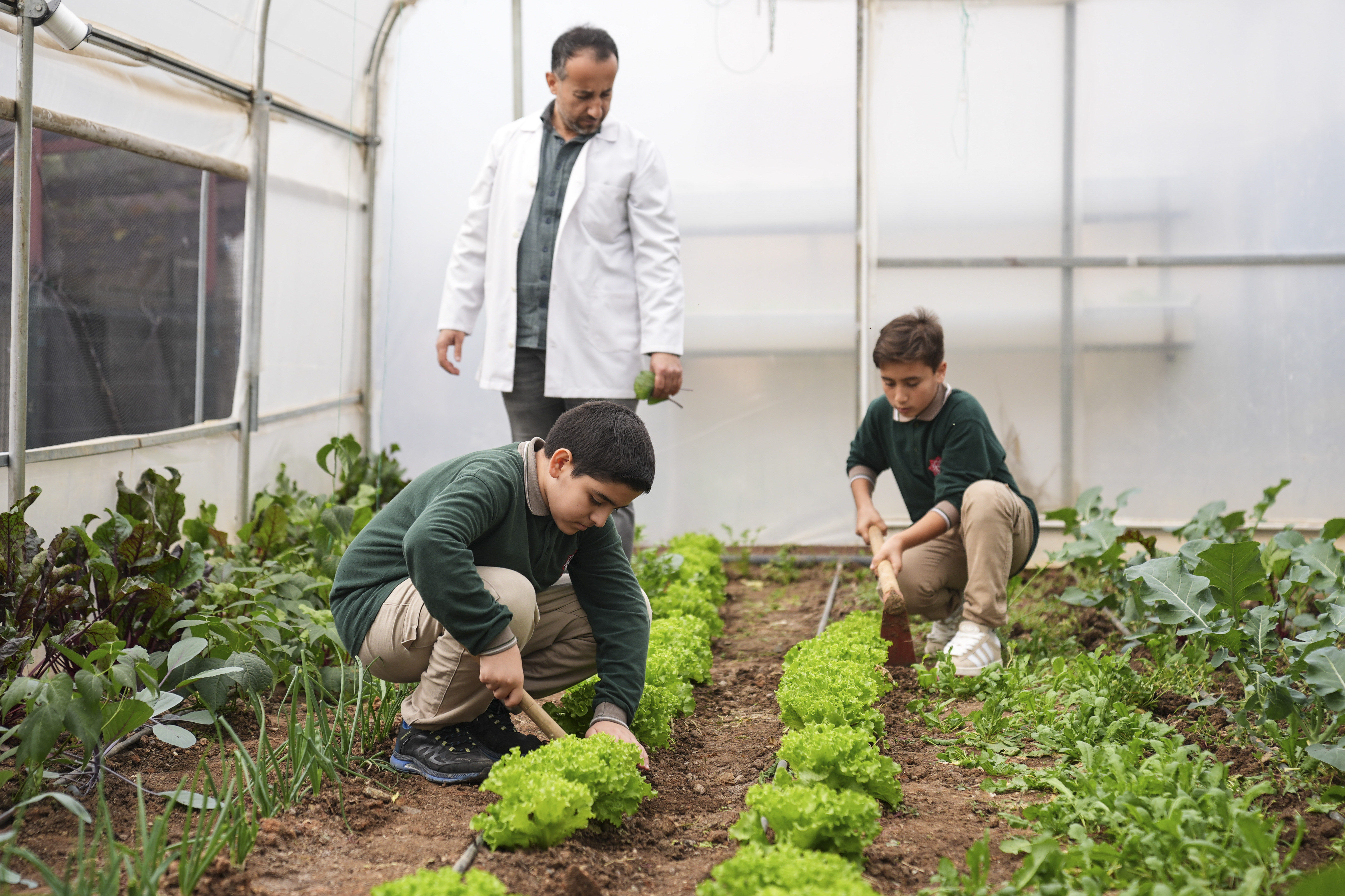 Yan alanda bulunan serada ise öğrenciler, ektikleri tohumlardan elde ettikleri mevsimlik sebze ve meyveleri hasat edebiliyor.