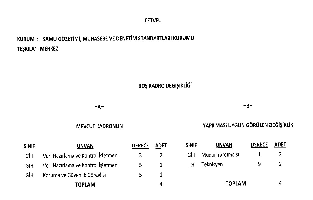 KGK 2025/471 Kararı ile Boş Kadroları Yeniden Belirledi