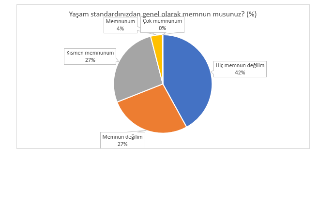 Memnuniyet Düzeyi: Kamu görevlilerinin %42'si yaşam standardından hiç memnun değil, %27'si ise memnun değil yanıtını verdi.