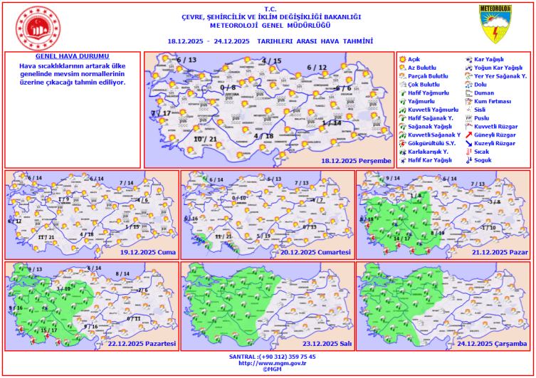 Meteoroloji Genel Müdürlüğü (MGM) verilerinden derlenen bilgilere göre, Türkiye genelinde mevsim normalleri civarında seyreden hava sıcaklıkları ve parçalı bulutlu havanın yerini, hafta sonundan itibaren batı bölgelerden giriş yapacak olan yağışlı sisteme bırakması bekleniyor.