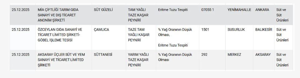 "guvenilirgida.tarimorman.gov.tr" adresi üzerinden "Sağlığı Tehlikeye Düşürecek Gıdalar" ve "Taklit veya Tağşiş Yapılacak Gıdalar" olmak üzere 2 farklı liste üzerinden söz konusu ürünler ve markaları açıklanıyor.