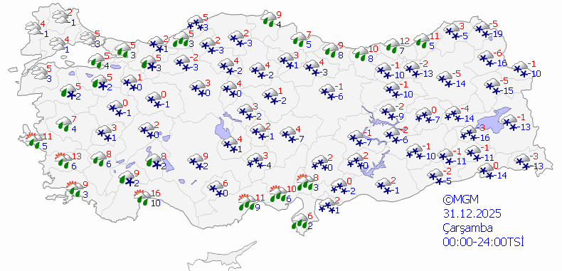 Meteoroloji Genel Müdürlüğü tarafından yapılan son hava tahminlerine göre, Türkiye genelinde soğuk ve yağışlı hava etkisini sürdürüyor. Hava sıcaklıklarının hissedilir derecede azalarak ülke genelinde mevsim normallerinin altına düşmesi beklenirken, birçok bölgede kar, kuvvetli rüzgar, buzlanma ve don olayları görülecek.