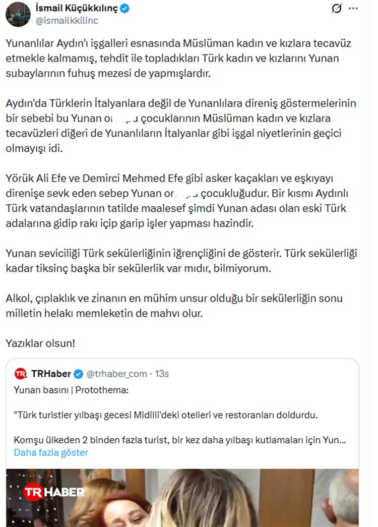 Paylaşımlarının kısa sürede sosyal medyada geniş yankı bulması üzerine Küçükkılınç, ikinci bir açıklama daha yaptı. Bu açıklamada da tarihsel değerlendirmelerini sürdürerek, özellikle Yunan işgali ve Milli Mücadele sürecine ilişkin kendi yorumlarını paylaştı. Küçükkılınç, Kemalizm, sekülerlik ve Yunan işgali arasındaki ilişkiye dair tartışmalı görüşlerini dile getirirken, Yunan adalarına yönelik turistik ilgiyi ideolojik ve tarihsel bir çerçevede ele aldı.