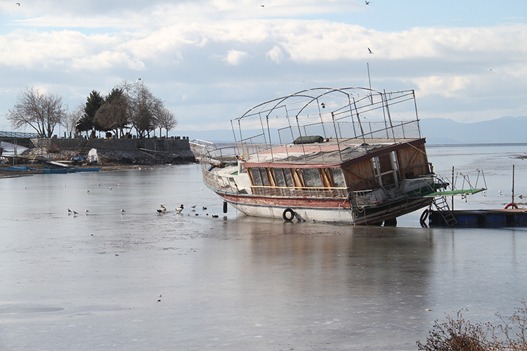 Konya'da Beyşehir Gölü'nün yüzeyinin bir kısmı buz tuttu
