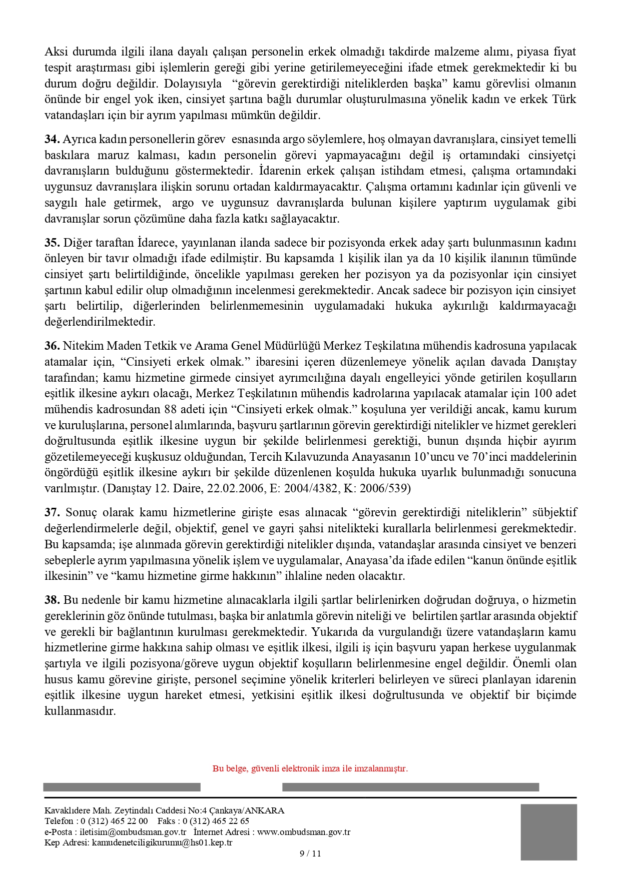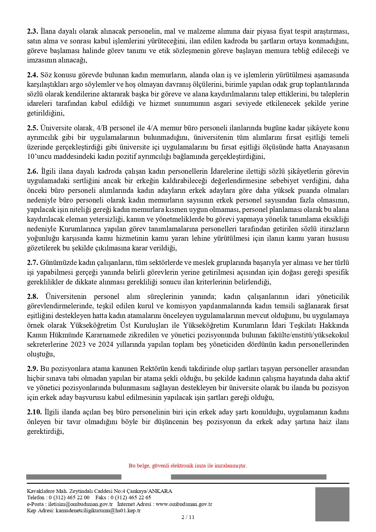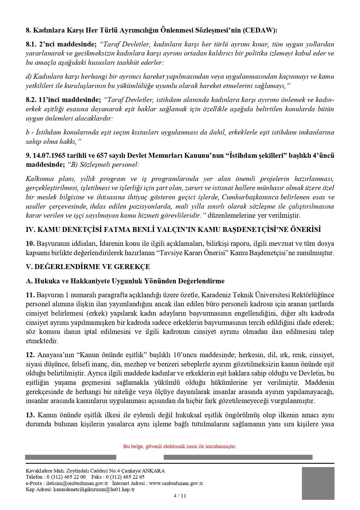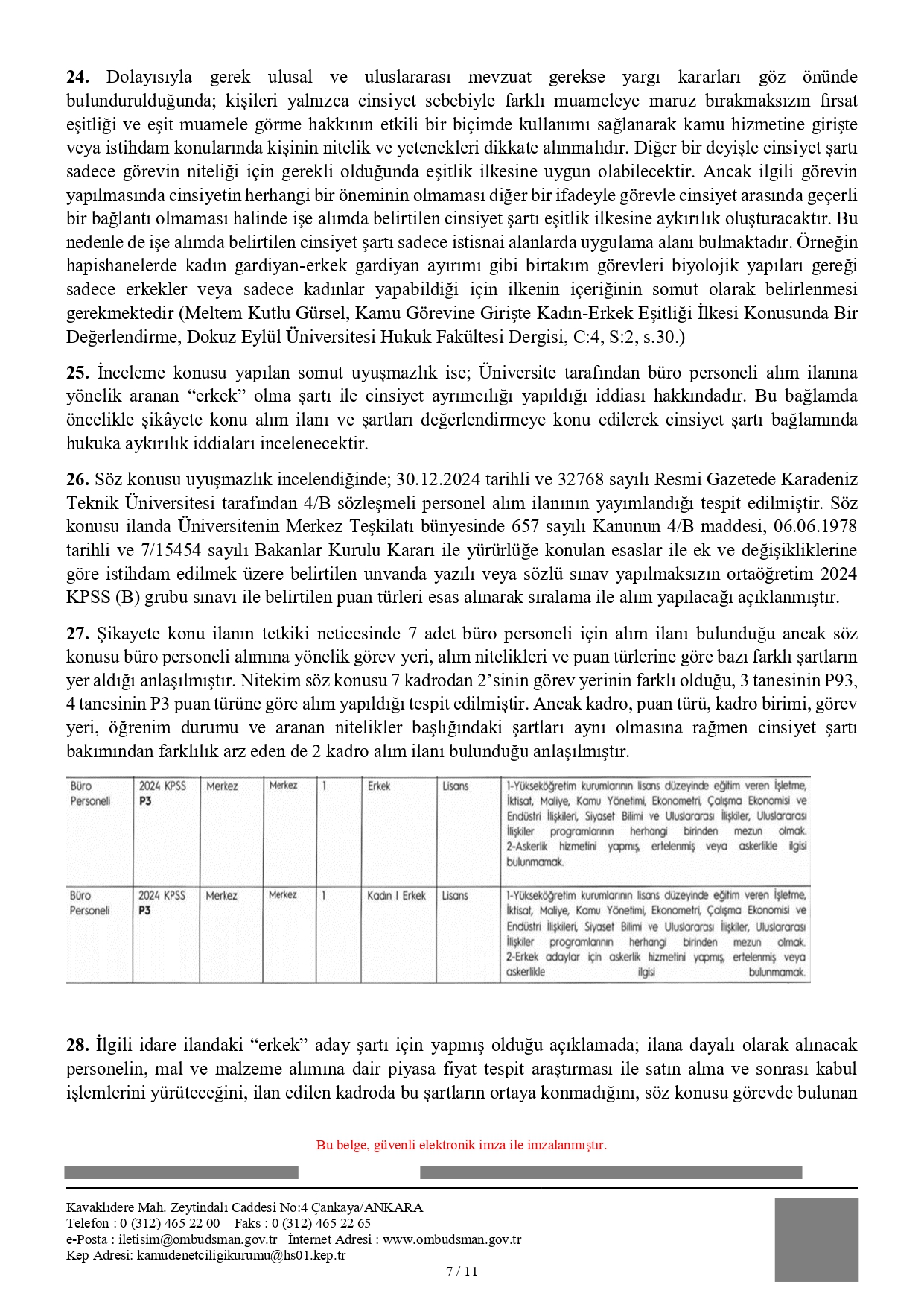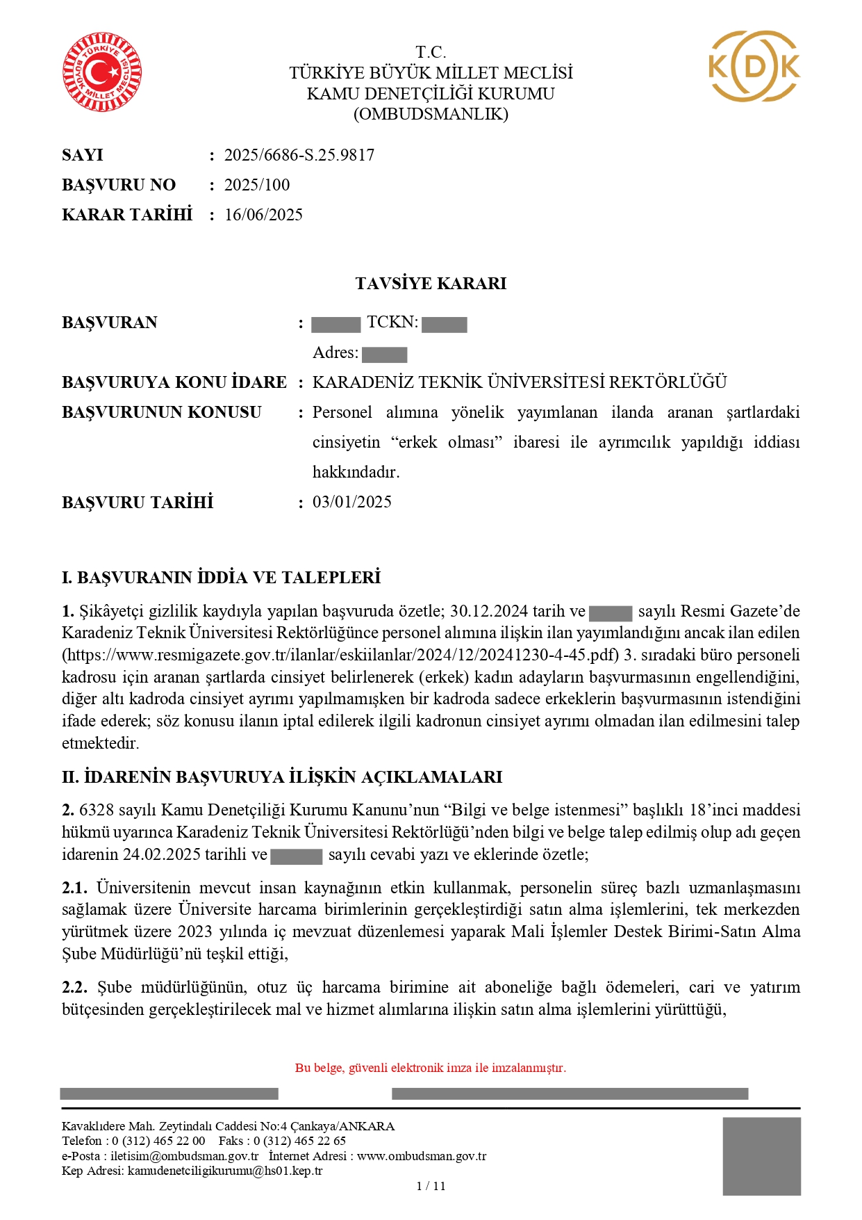 Kamu Denetçiliği Kurumu, Karadeniz Teknik Üniversitesi tarafından büro personeli alımında yer alan erkek cinsiyet şartına yönelik tavsiye kararı verdi!