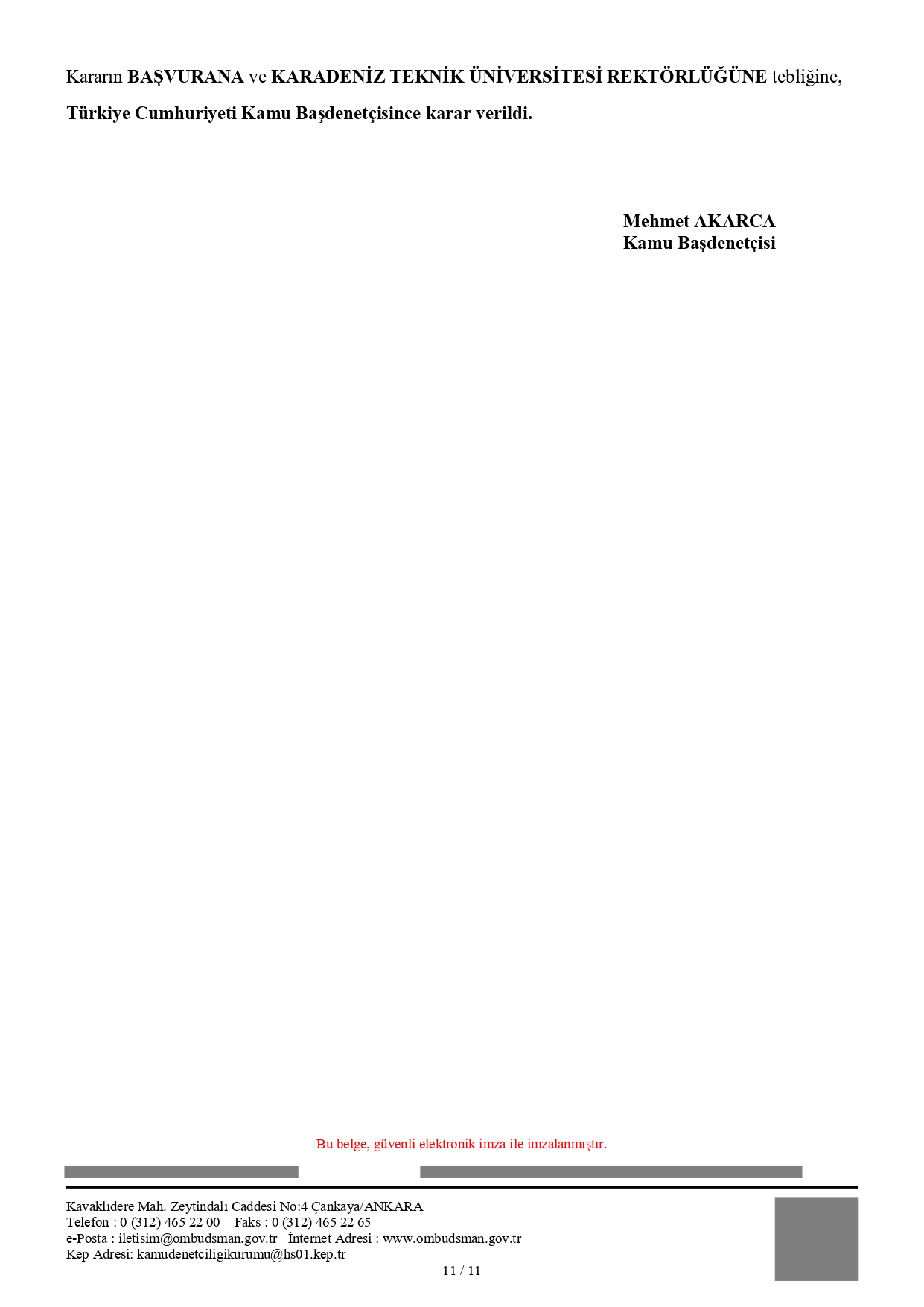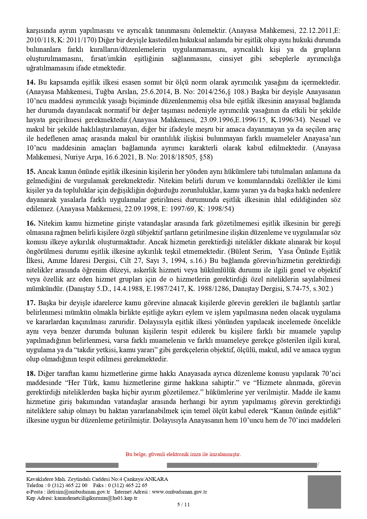yönelik olarak Kamu Denetçiliği Kurumuna başvuruda bulunulmuştur.