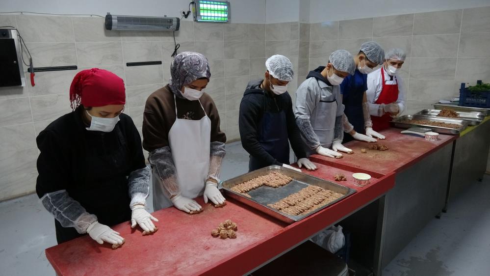 bin kişi için yemek hazırlayarak hem meslek öğreniyor hem de okulun döner sermaye