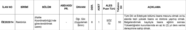 Kalite Koordinatörlüğünde çalışacak kişilerin bölüm şartından öte bu alanda en azından bir tecrübesi bulunması beklenir ki en azından işe başladığında üniversiteye bu anlamda değer katabilsin. Ancak, ilanda kalite alanında tecrübe aranmamıştır. İşin diğer garip tarafı, derse girmek gibi bir yükümlülüğü bulunmayan ve idari süreçlerde görev alacak kişiden en az 2 yıl ders verme deneyimi istenmiştir. Akla mantığa yatmayan, elle tutulur hiçbir tarafı olmayan bu şartlarla alınacak kişinin üniversiteye ve devlete yük olmaktan başka bir açıklaması yoktur!
