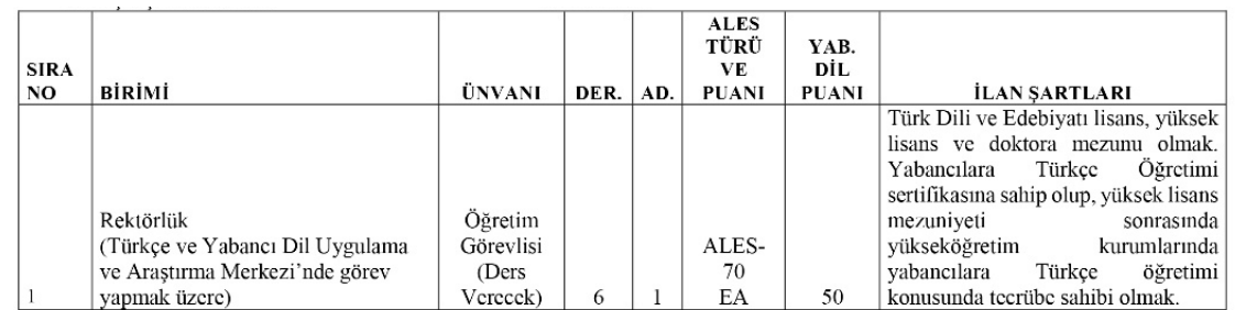 üzere alınacak Öğretim Görevlisinde şu şartlar yer almaktadır: