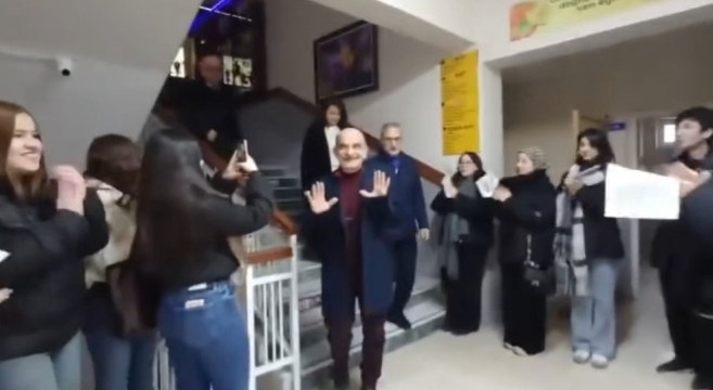 Okul koridorlarında alkışlarla karşılanan Birincioğlu, vedalaşarak okuldan ayrıldı.