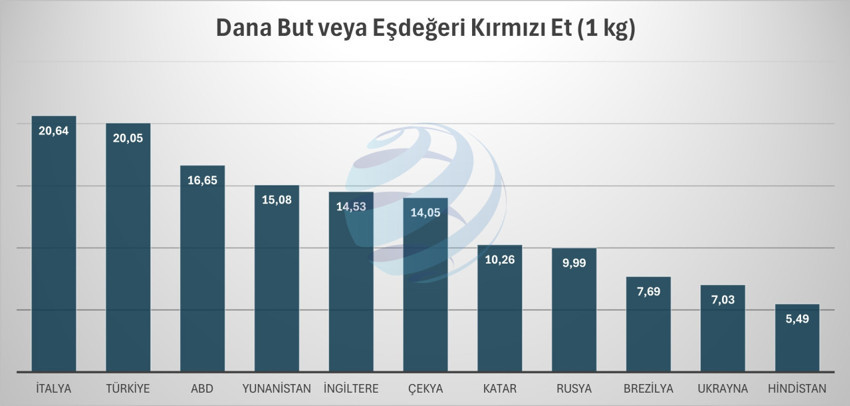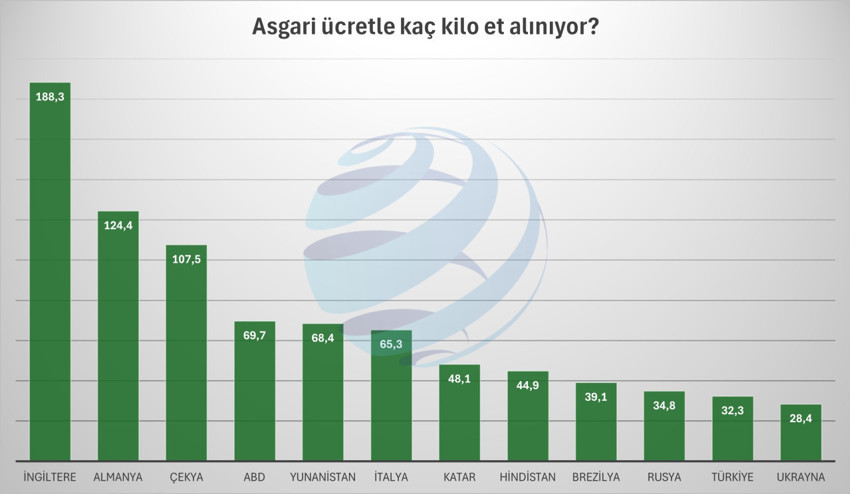 Gıda enflasyonunda et fiyatları üzerinden süren tartışmalarda, Türkiye'de et fiyatları dolar bazında bakıldığında, İtalya ve Almanya'ya yakın olduğu görülürken, asgari ücretlinin alım gücüyle kıyaslandığında erişimin ciddi şekilde sınırlı kaldığı tabloya yansıyor.