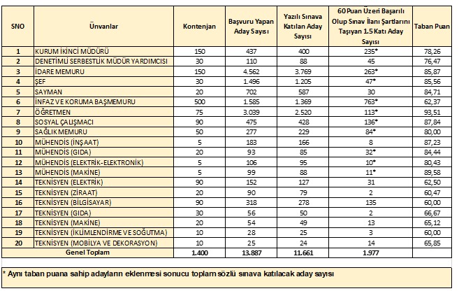 Baraj Puanı: Yazılı sınavdan 60 ve üzeri puan almasına rağmen, kontenjan