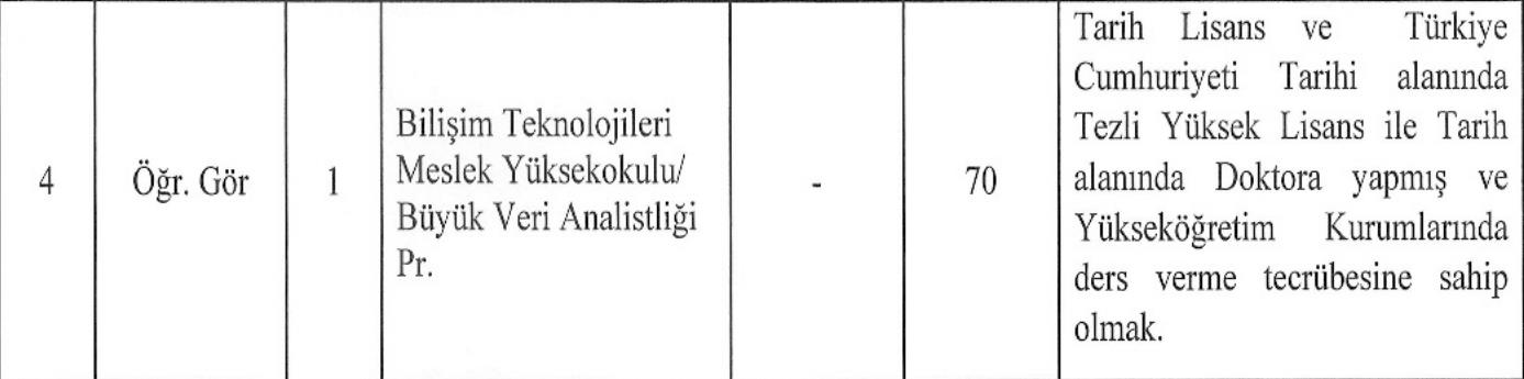 Öğretim Görevlisi kadrosuna başvuracak adaylarda; "Tarih Lisans ve Türkiye
