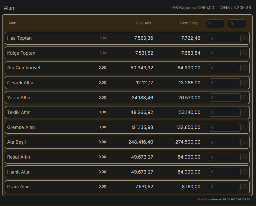 İşte 30 Ocak 2026 Cuma gününün ilk saatlerinde güncel altın fiyatları tablosu.