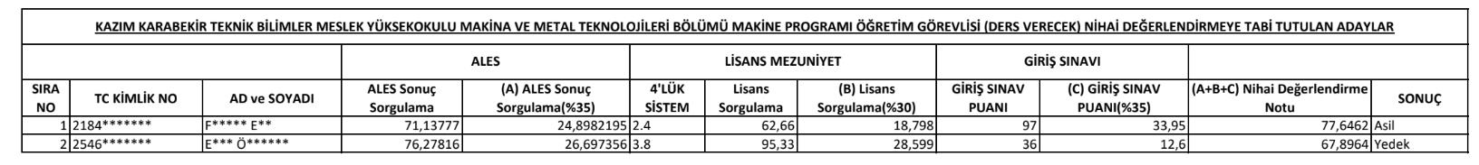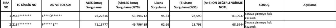 -Yedek olan adayın ALES ve lisans ortalaması kazanan adaydan yüksek olmasına