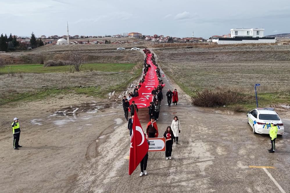 Kırıkkale'de lise öğrencileri, 150 metre uzunluğundaki Türk bayrağıyla okula