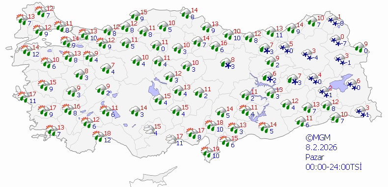Doğu Anadolu'da, Tunceli, Bingöl ve Muş'un batısında akşam saatlerinden itibaren kuvvetli yağmur ve karla karışık yağmur görülecek. Bölgenin yüksek kesimlerinde ise kuvvetli kar yağışı etkili olacak. Yarın öğle saatlerinden sonra Bitlis, Van'ın güneyi, Şırnak'ın doğusu ve Hakkari'de kar yağışı etkisini artırırken, düşük rakımlı yerlerde kuvvetli yağmur geçişleri yaşanacak.