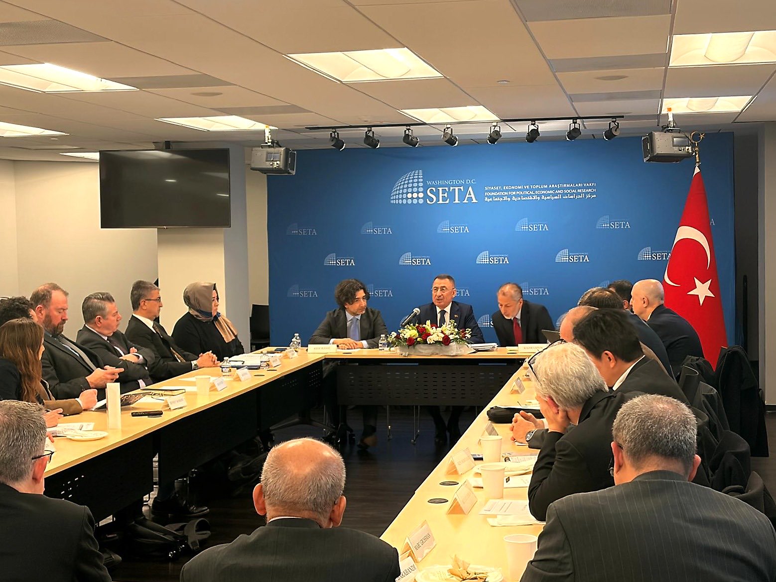 Siyaset, Ekonomi ve Toplum Araştırmaları Vakfı (SETA) Washington ofisinin ev sahipliğinde düzenlenen toplantıda; Türkiye-ABD ilişkilerinin mevcut durumu, bölgesel güvenlik mimarisi ve iki ülke arasındaki potansiyel iş birliği alanları değerlendirildi. ABD'nin önde gelen strateji uzmanlarının katıldığı etkinlik, soru-cevap bölümüyle karşılıklı görüş alışverişine sahne oldu.