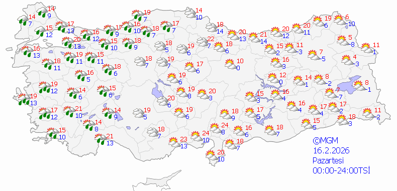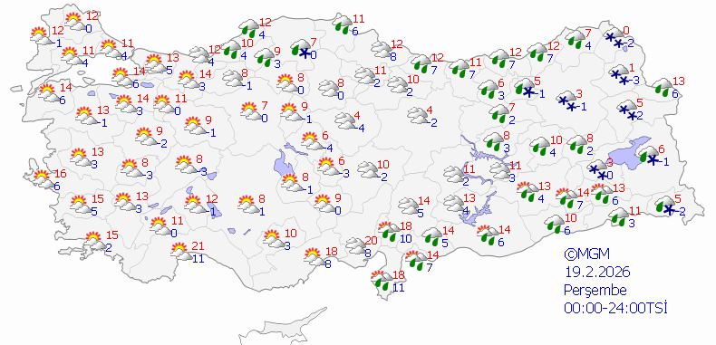 Meteoroloji Genel Müdürlüğü olarak yapılan değerlendirmelere göre: Ülkemiz genelinin parçalı ve çok bulutlu, Marmara (Sakarya ve Bilecik hariç), Kıyı Ege ile Antalya çevrelerinin sağanak yağışlı geçeceği tahmin ediliyor.