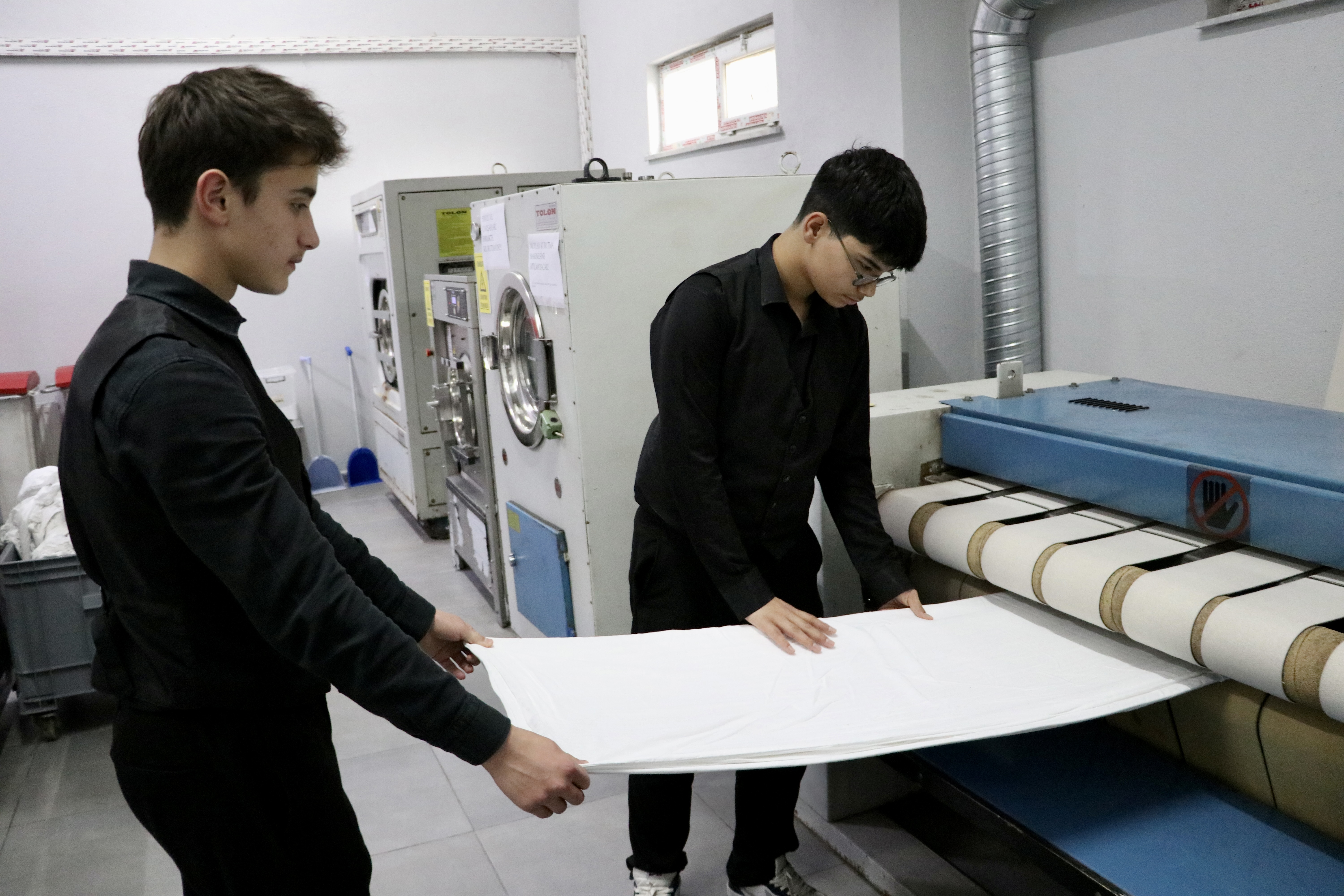 Ayrıca okulun uygulama otelinin resepsiyon, mutfak, pastane, kat hizmetleri ve çamaşırhane gibi bölümlerinde çalışarak iş hayatına hazırlanan öğrenciler, her gün taşımalı eğitim kapsamındaki yaklaşık 3 bin kişi için yemek ve 6 bin rol ekmek üretiminde de yer alıyor,