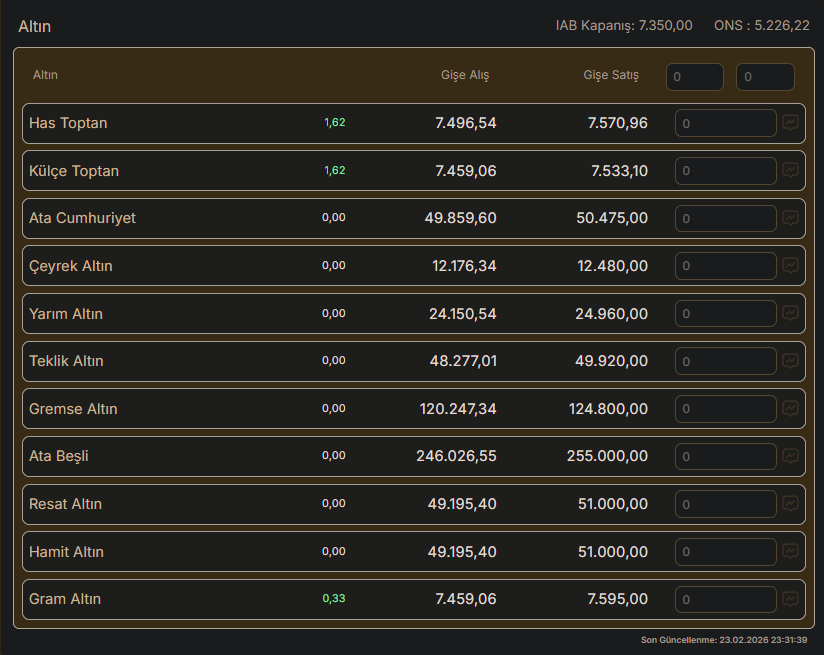 İşte 24 Şubat 2026 Salı gününün ilk saatlerinde güncel altın fiyatları tablosu.