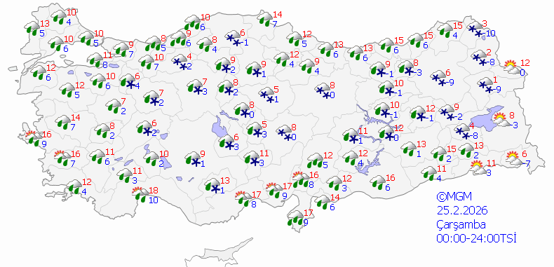 Meteoroloji tahminlerine göre Ankara'da 25 Şubat Çarşamba ve 26 Şubat Perşembe günleri karla karışık yağmur görülecek. Yağışların özellikle yüksek kesimlerde yer yer kara dönüşebileceği değerlendiriliyor. Şehir merkezinde ise yağmur-karla karışık yağmur geçişlerinin etkili olması bekleniyor.
