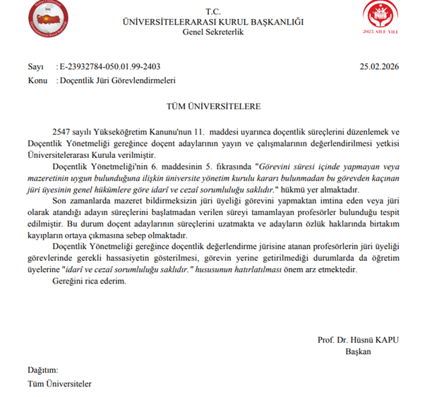 Üniversitelerarası Kurul Başkanlığı, doçentlik jüri süreçlerinde keyfi davranarak adayların mağduriyetine sebebiyet veren profesörlere uyarıda bulundu!