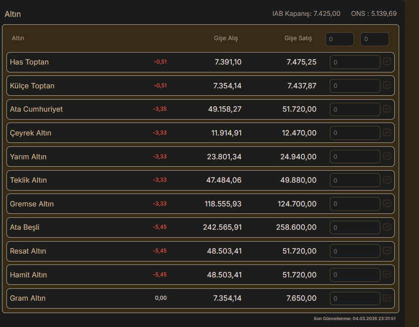 Altın alım satımı yapacaklar ve yatırımcılar merakla güncel altın fiyatlarını araştırıp takip ediyor. Peki, çeyrek altın fiyatları bugün ne kadar oldu? Yarım altın bugün kaç lira? İşte 5 Mart 2026 çeyrek, ons, gram ve yarım altın satış fiyatları...