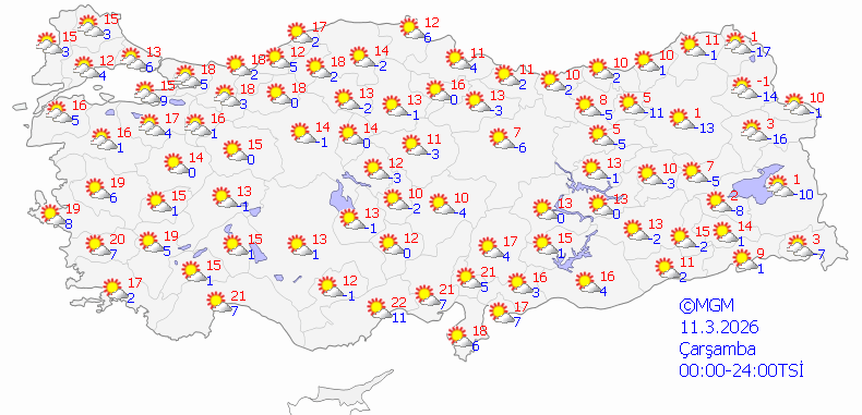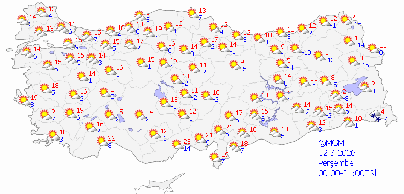 Sabah saatlerinde Marmara, İç Ege, İç Anadolu ile Karadeniz'in iç kesimlerinde pus ve yer yer sis bekleniyor. Doğu Karadeniz'in iç kesimlerinin yüksekleri ile Doğu Anadolu'nun yüksek kar örtüsüne sahip eğimli kesimlerinde çığ tehlikesi ile kar erimesi tehlikesi bulunmaktadır.