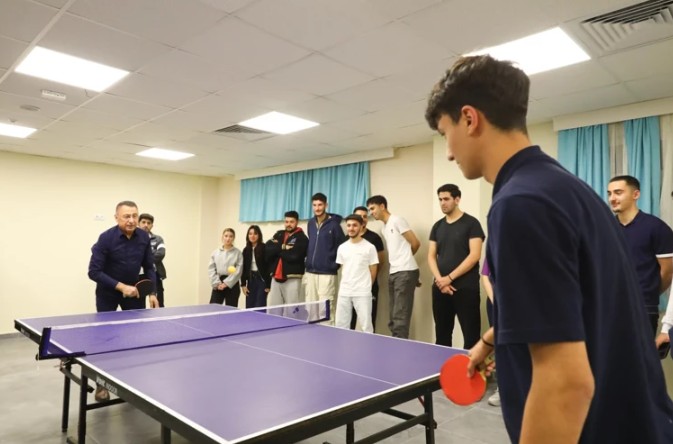 Öğrencilerle sahur yaptı, masa tenisi oynadı
