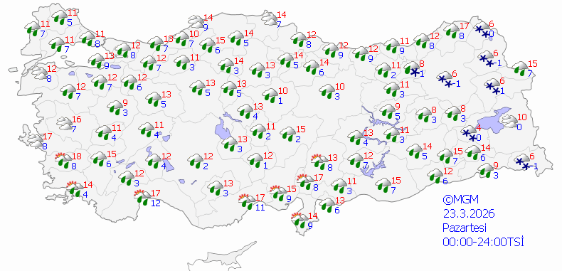 MGM'nin tahmin haritalarında tüm hafta boyunca en çok dikkat çeken bölge ise Doğu Anadolu ve Doğu Karadeniz'in iç kesimleri oldu. Yağışlı sistem iç ve batıda yağmur şeklinde görülürken, doğu illerinde sıcaklıkların gece sıfırın altında 5 derecelere kadar düşmesiyle birlikte karla karışık yağmur ve kar şeklinde etkili olacak.