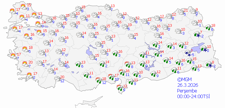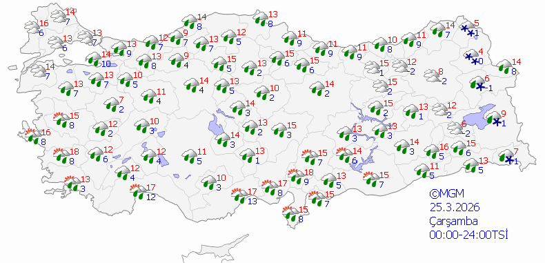 Cuma gününden itibaren ise yağışlar yurdun doğusu ile batısında etkisini sürdürürken iç, kuzey ve güney kesimlerde parçalı bulutlu yer yer açık hava hakim olacak. Sıcaklıkların ise ülke genelinde kademeli olarak artması bekleniyor. Doğu kesimlerde ise hafta boyunca çığ tehlikesi uyarısı bulunuyor.