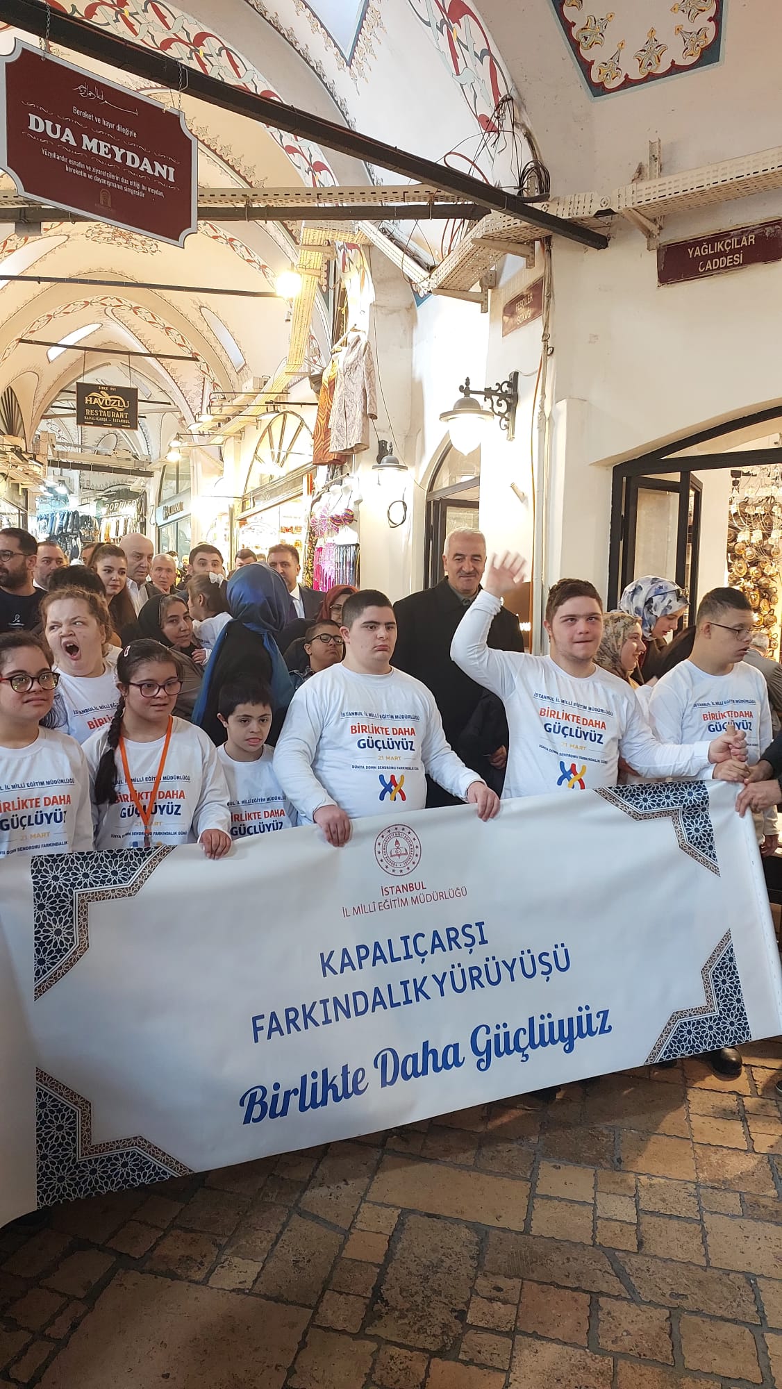 İstanbul Valiliği ve İstanbul İl Milli Eğitim Müdürlüğü işbirliğiyle 21 Mart Dünya Down Sendromu Günü dolayısıyla farkındalık yürüyüşü düzenlendi. Down sendromlu bireylerin toplumsal yaşamda görünürlüğünün artırılması amacıyla Kapalıçarşı'da gerçekleştirilen yürüyüşe İl Milli Eğitim Müdürü Murat Mücahit Yentür, öğrenciler, öğretmenler ve okul yöneticileri katıldı. Mehter marşı çalan down sendromlu öğrenciler Kapalıçarşı esnafı tarafından coşkuyla karşılandı.