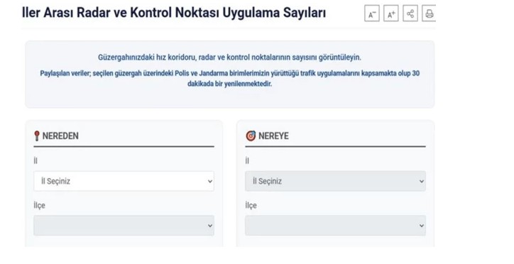 Bakanlık tarafından geliştirilen sistem, sürücülerin seyahat güzergahları üzerindeki radar noktaları, hız koridorları ve kontrol noktalarını önceden görüntülemesine olanak tanıyor. Bakanlığın resmi internet sitesi üzerinden erişilebilen uygulama, yaklaşık 30 dakikada bir güncelleniyor.