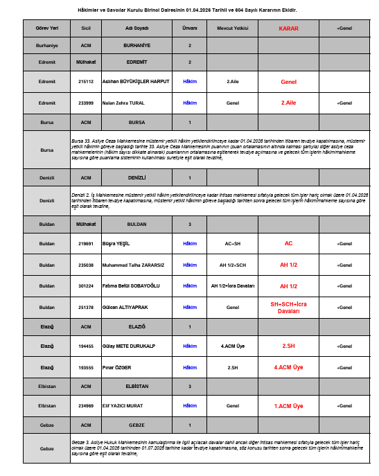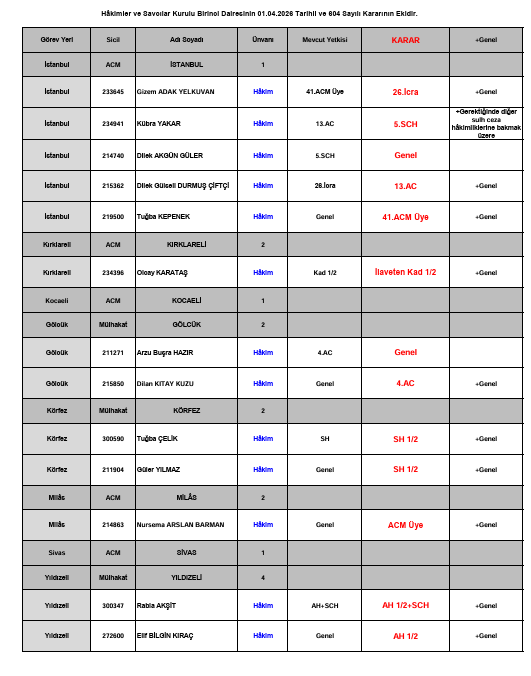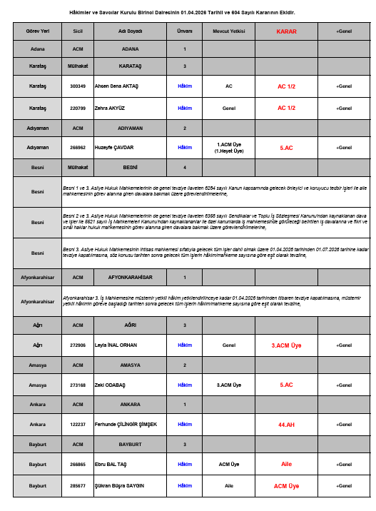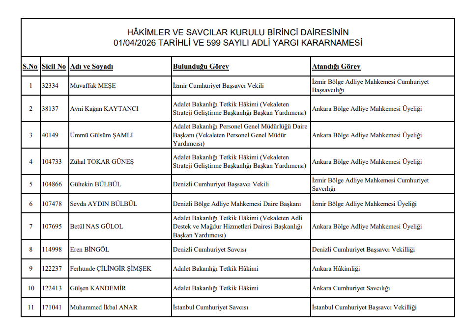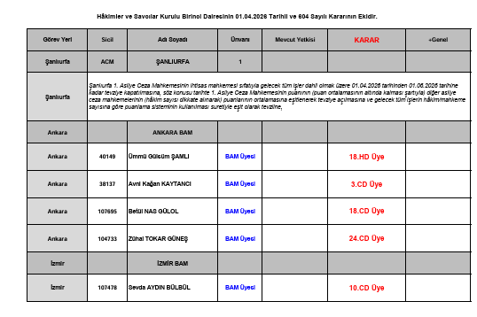 Savcılık ve Hakimlik Kadrolarında Değişim
