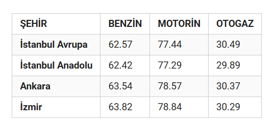 1 NİSAN GÜNCEL AKARYAKIT FİYATLARI