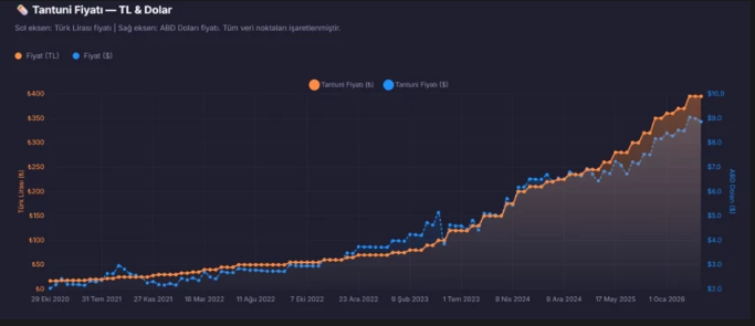 Tantuni fiyatlarının TL ve dolar bazında seyri