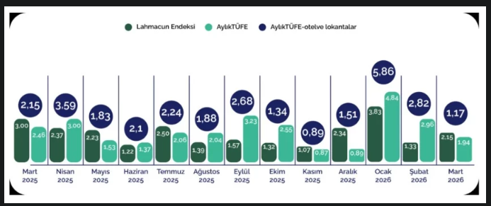 Research İstanbul SUSAM tarafından hesaplanan Lahmacun Endeksi (LE), Mart 2026'da aylık bazda %2,15 artarak TÜFE'nin (%1,94) üzerine çıktı.
