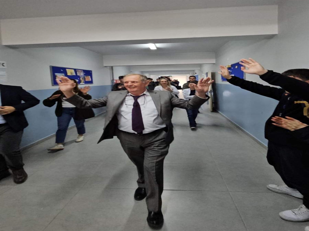 Öğretmen Halil İbrahim Akyüz, konuşmasının ardından öğrencilerin alkışları eşliğinde okuldan ayrıldı.