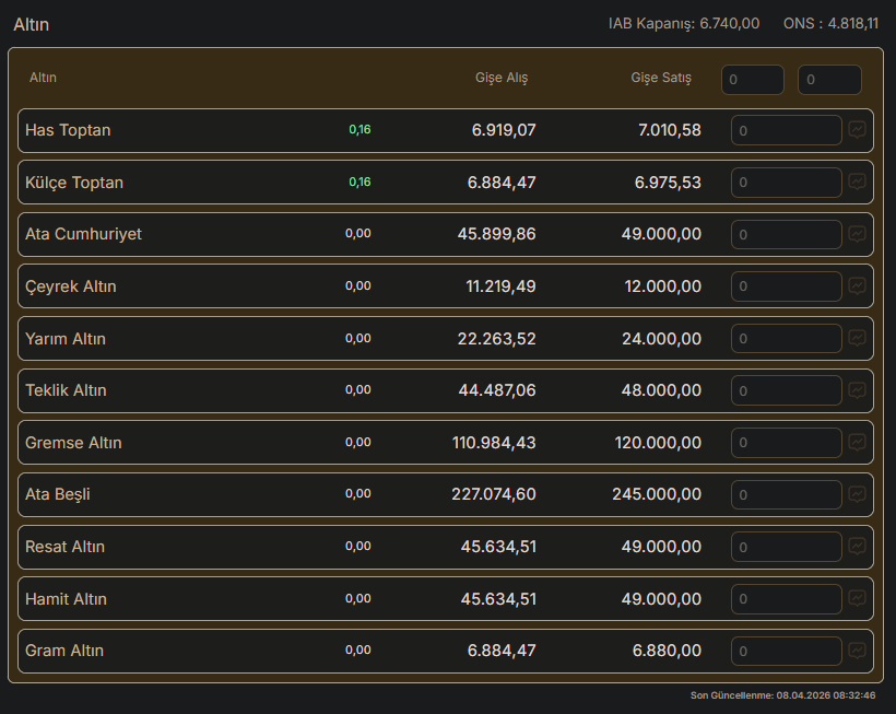Ons altın güne 4 bin 744 dolardan başladı. Gün içinde en düşük 4 bin 716 dolar, en yüksek de 4 bin 854 dolar seviyesi görüldü. Şu sıralar 4 bin 794 dolardan işlem geçiyor.