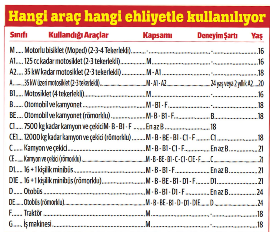 HANGİ ARAÇ HANGİ EHLİYETLE KULLANILIYOR
