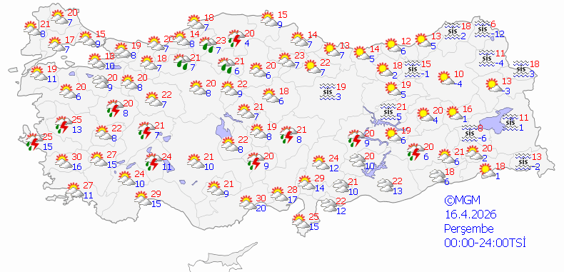 Meteoroloji Genel Müdürlüğü'nün (MGM) yayımladığı haftalık hava tahmin raporuna göre, Türkiye genelinde hafta ortasına kadar mevsim normalleri üzerinde seyredecek olan sıcaklıklar, hafta sonuna doğru yerini gök gürültülü sağanak yağışlı bir sisteme bırakacak.