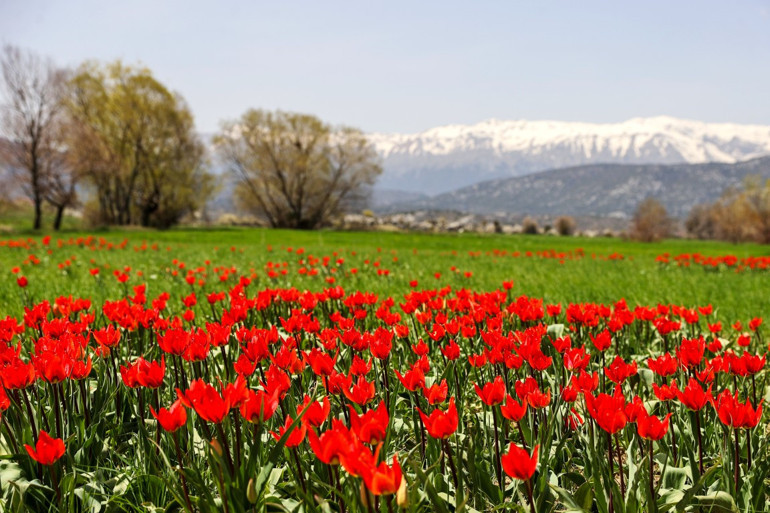 Beyşehir Gölü'nün adalarında yeşil çayırlar kendini gösterirken, çiçek açan ağaçlar ile zirvelerdeki kar örtüsünün oluşturduğu manzara, bölgeye ayrı bir güzellik kazandırıyor.