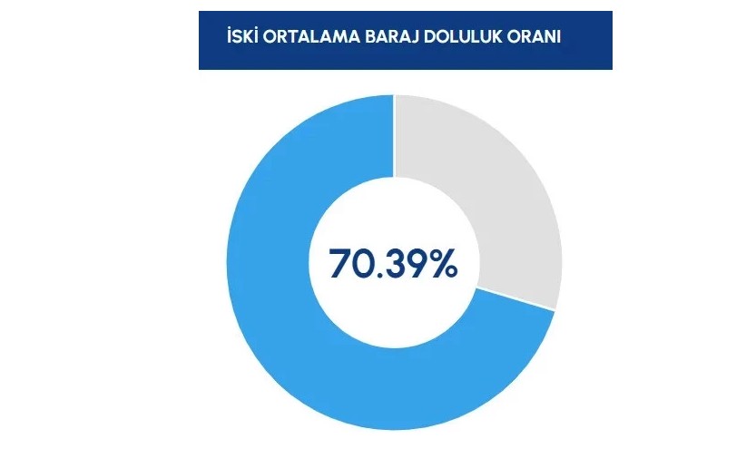 İSKİ verilerine göre, İstanbul'a su sağlayan barajlarda doluluk oranı 19 Nisan itibarıyla yüzde 70.39 oldu. En yüksek doluluk yüzde 92.63 ile 92.8 Barajı'nda, en düşük oran ise yüzde 40.24 ile Istrancalar Barajı'nda kaydedildi.